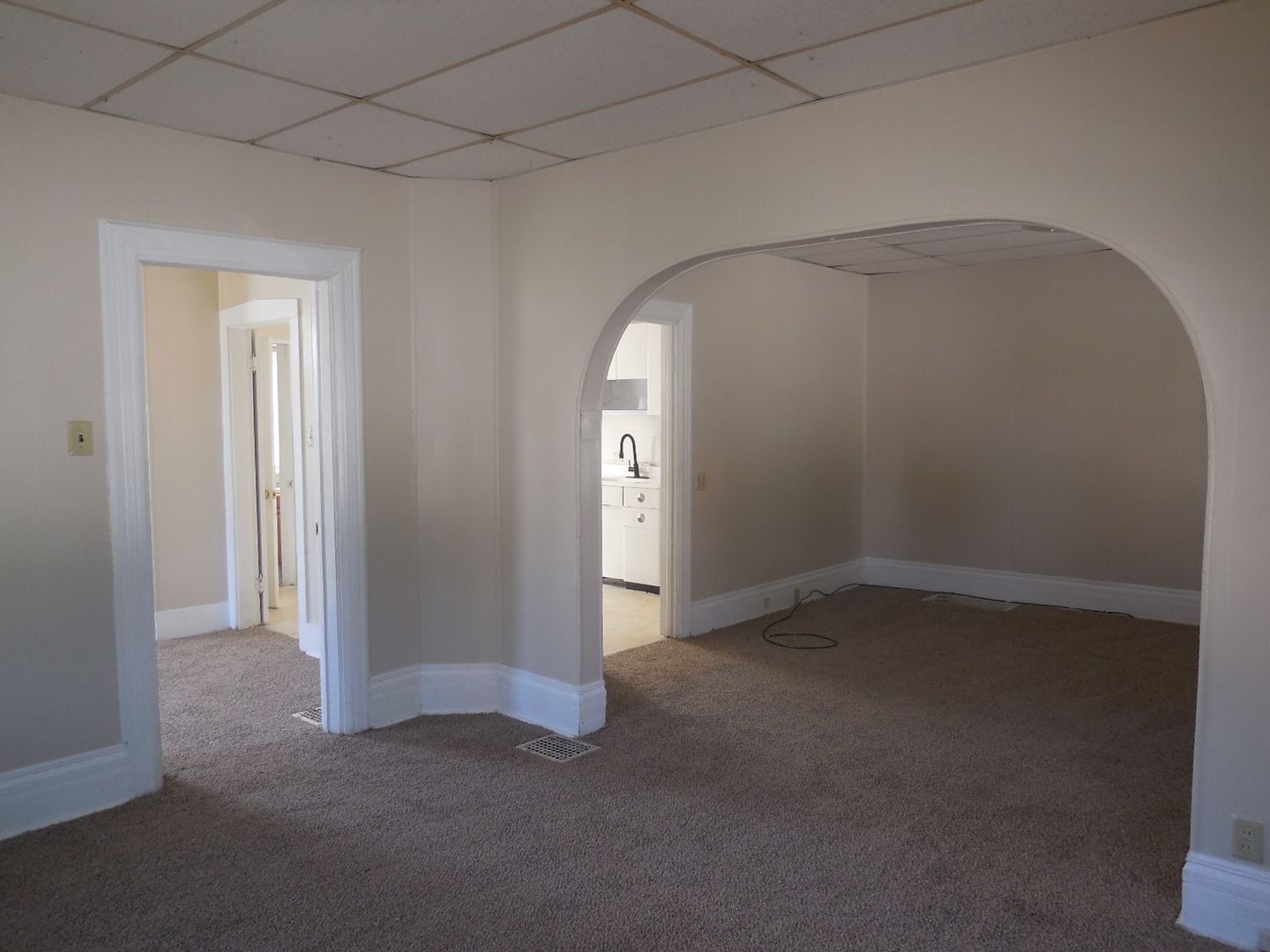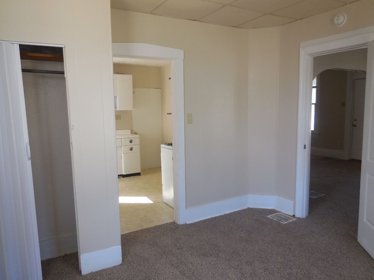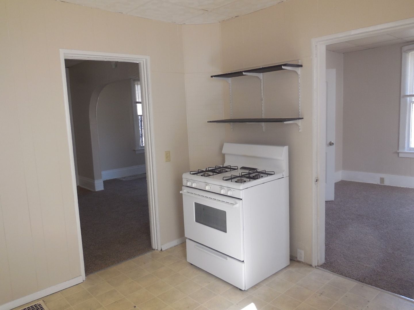 Two bedroom home living room, dining room, kitchen and bath on first floor.