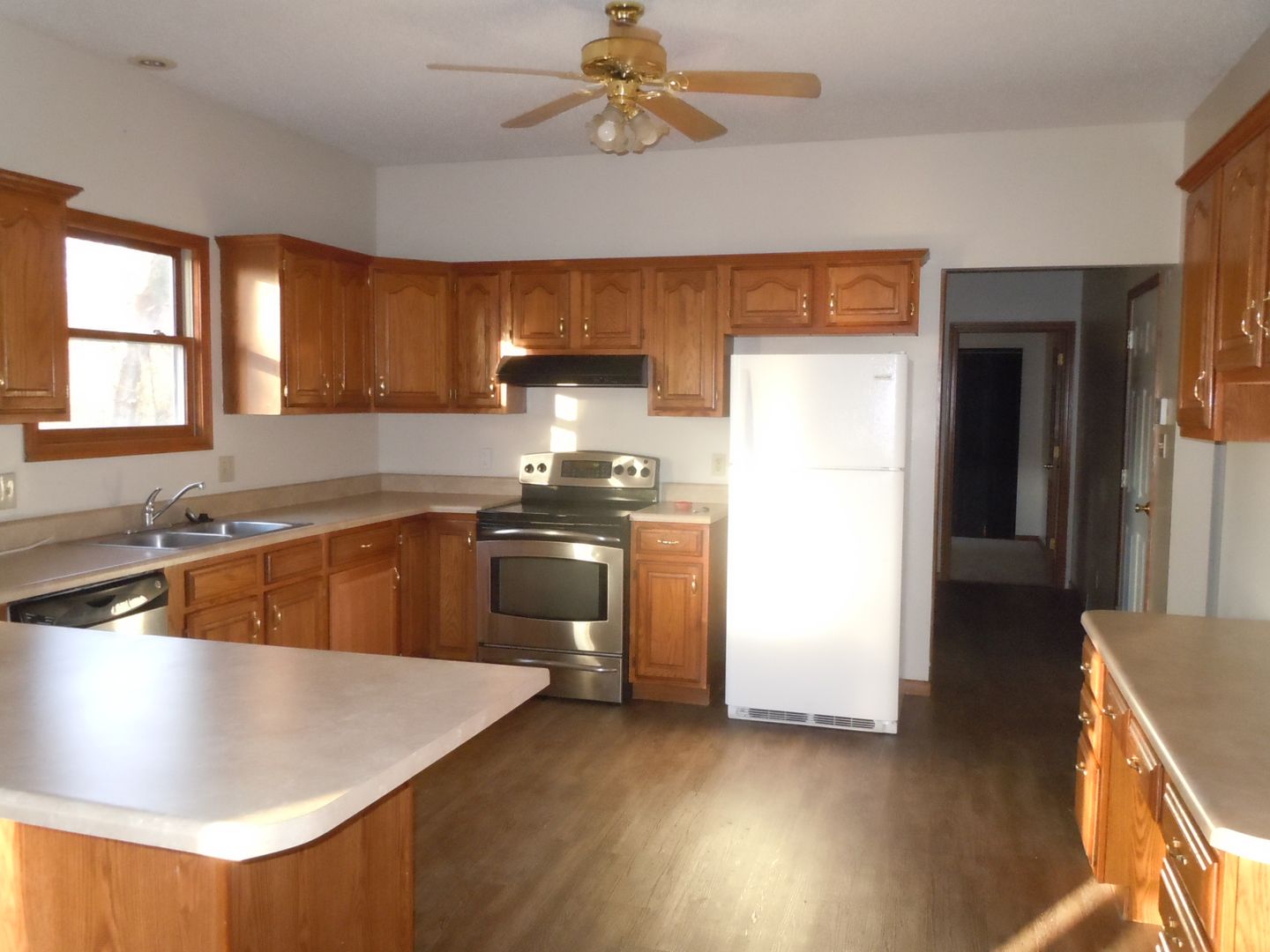 Furnished with Range, refrigerator, microwave and dishwasher.