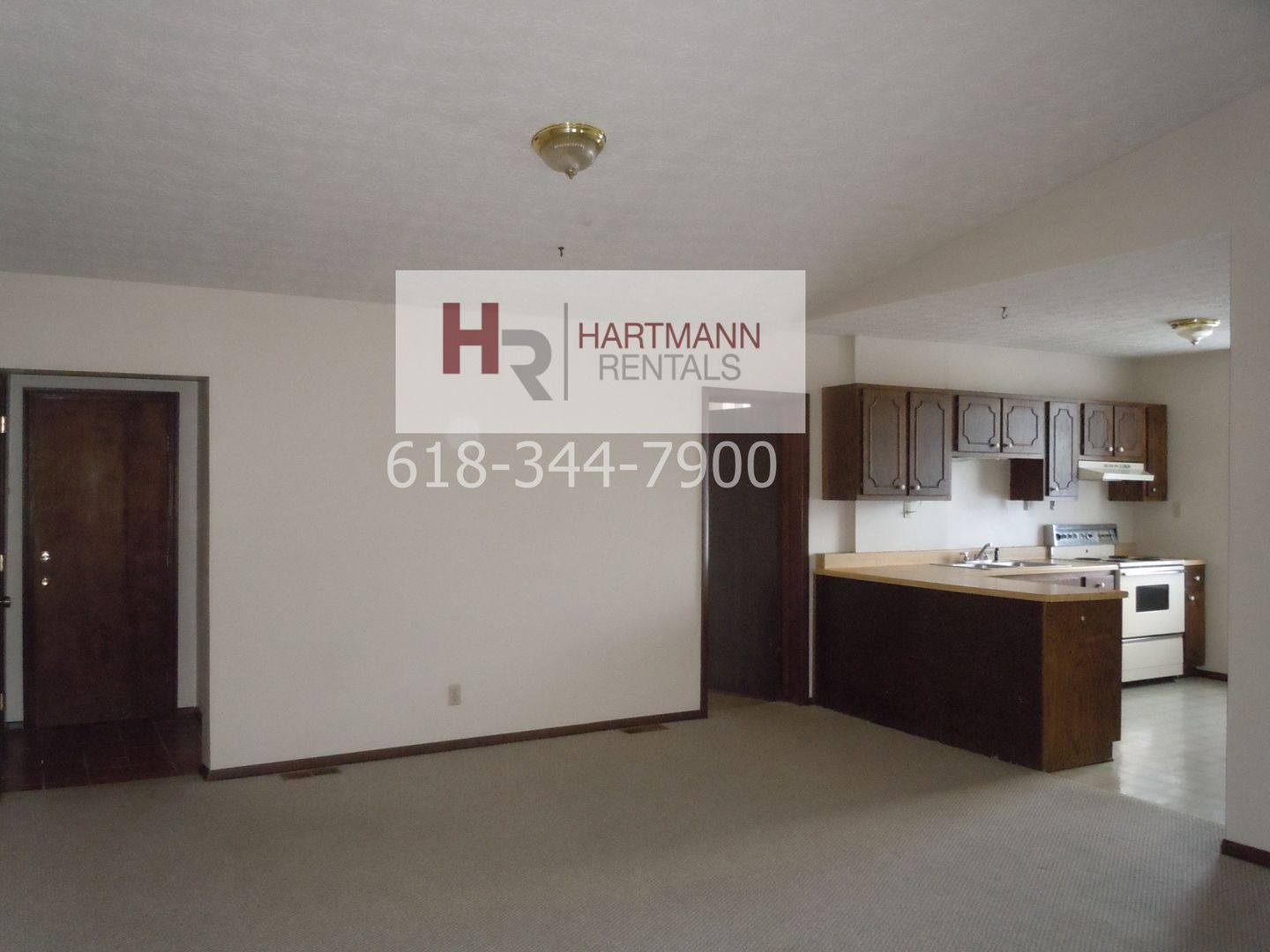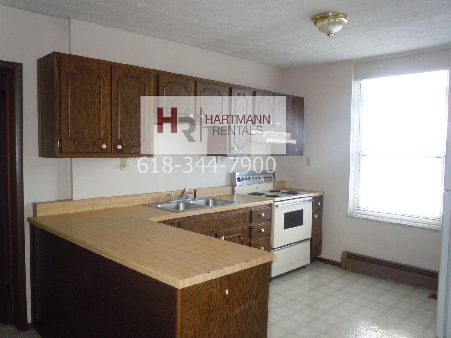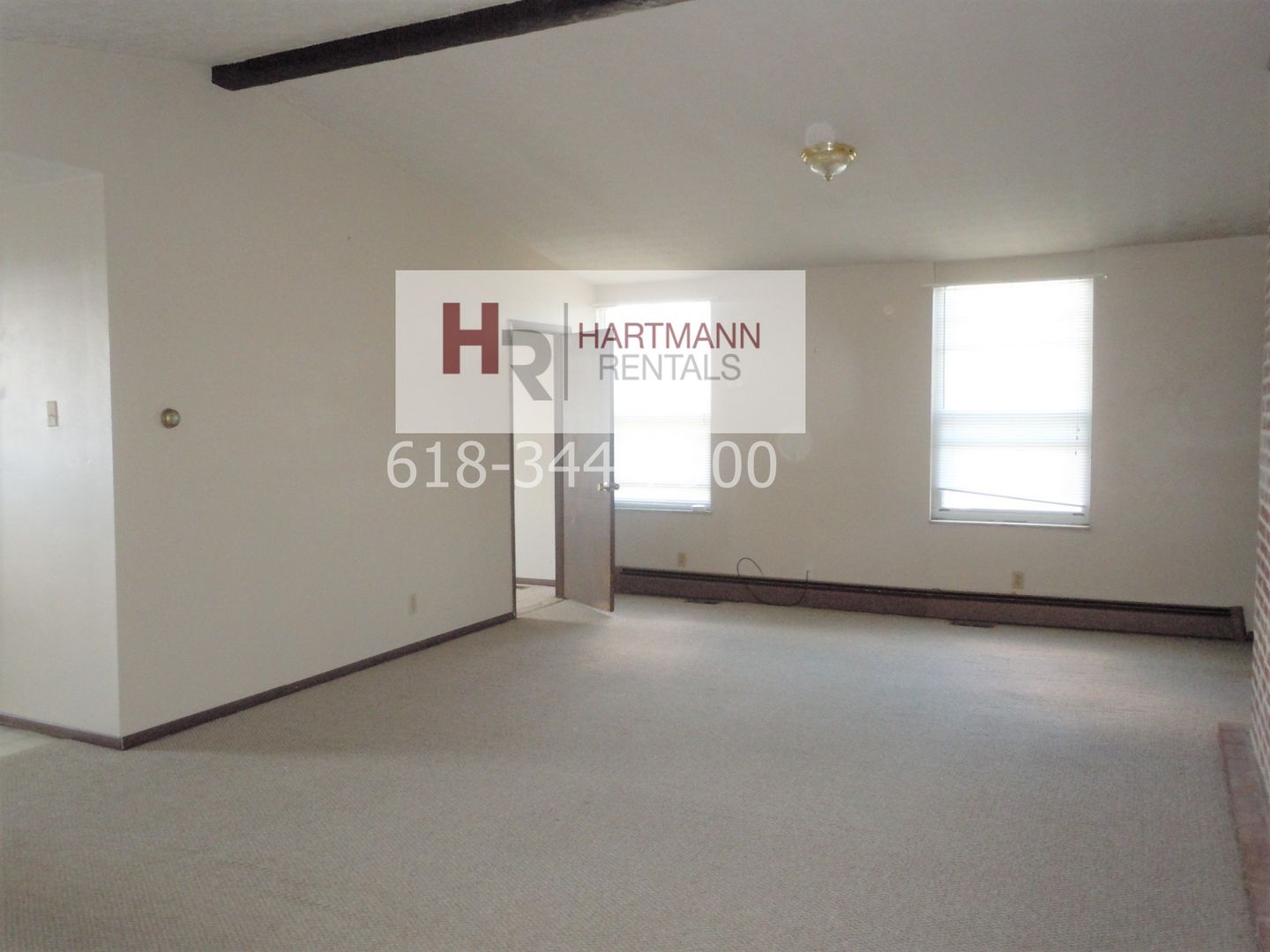 One bedroom upstairs apartment in Collinsville has a super large living room kitchen and bedroom.